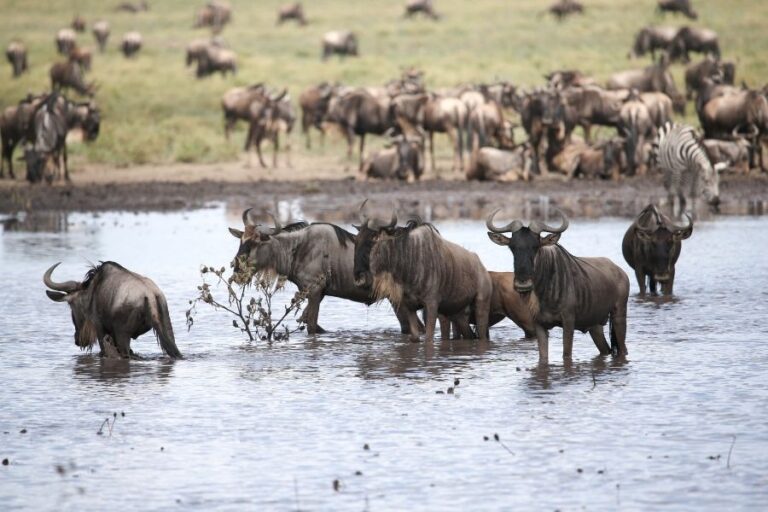 The Tarangire River flows through the park and is a source of water for wildlife during the dry season. It attracts a large number of elephants, zebras, and wildebeests, which come to drink and cool off in its waters. Other animals such as giraffes, lions, and leopards can also be spotted around the river.