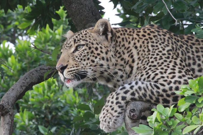 A leopard on a tree